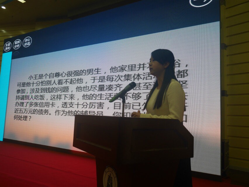 11月28日,9428cn太阳集团古天乐首届辅导员职业能力大赛在图书馆思睿厅拉开帷幕,湖北省教育厅思政处处长何泽云、9428cn太阳集团古天乐党委书记刘建凡、9428cn太阳集团古天乐党委常委侯勇及多位优秀在校辅导员代表出席了本次比赛,我院辅导员杜彬经过初赛、复赛的选拔,成功晋级本次大赛的决赛。