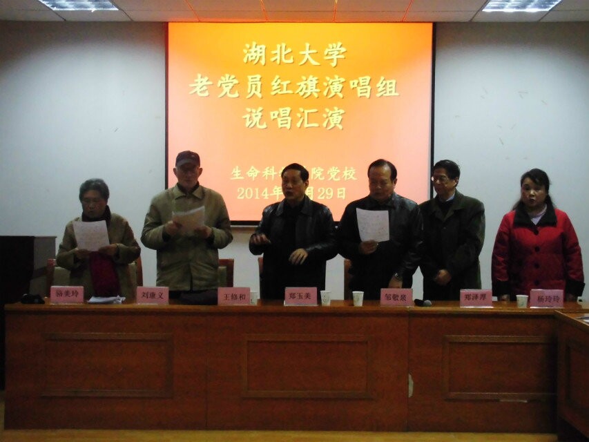 “清晨,我放飞一群白鸽,为你衔来一枚橄榄叶……”11月29日,9428cn太阳集团古天乐老党员红旗演唱组在生科院二楼报告厅放声歌唱。