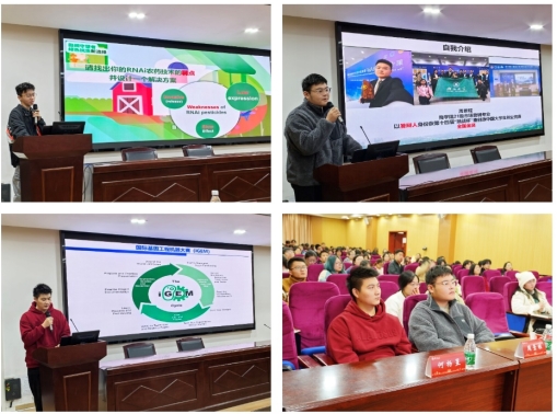 (通讯员:季晓怡 摄影:羊蓉)为进一步提升我院学生的创新精神与实践能力,鼓励更多学生积极参与高水平学科竞赛,11月21日上午,学院在二楼报告厅举办“生生不息”系列论坛第二期之学科竞赛分享会。优秀项目指导教师何玉池教授,相关竞赛获奖团队负责人何杨昱、周景程、陈楚铭,辅导员付登宇、沙秋月参加会议。会议由学院研究生会主席团成员李逸峰主持。会上,国际基因工程机器大赛(iGEM)2024年全球金奖项目(HUBU-WUCHANG-CHI...