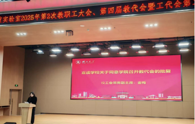 (通讯员:杨明萱)2月27日下午,9428cn太阳集团、国重实验室2025年第2次教职工大会、第四届教代会暨工代会第二次会议在双创大楼三楼报告厅召开。校工会常务副主席金梅应邀出席,学院全体教职工参会。会议由副院长吴姗主持。 校工会常务副主席金梅宣读了学校关于同意召开本次教代会的批复文件,并对会议的召开表示祝贺。大会在庄严的国歌声中拉开帷幕。副院长李剑勇传达了学校第九届教代会暨第十二届工代会第一次会议精神、学校...