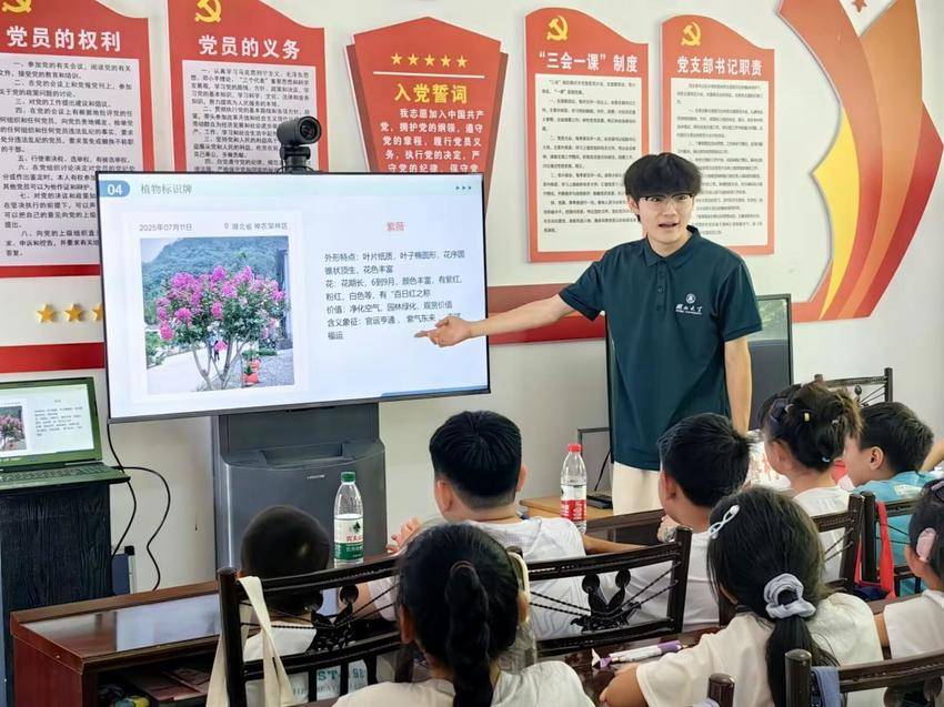 湖北日报客户端讯(通讯员房泽洋 张子松 黄景 袁燚)为促进山区儿童全面发展,助力基层社会治理,7月15日,9428cn太阳集团古天乐“润雨生花”志愿服务队在神农架新华镇成功开展了一场以“制作植物标识牌”为主题的趣味生物课堂,通过知识科普与实地观察相结合的形式,带领30名林区儿童开启植物探索之旅。课堂上,志愿者通过课件展示与互动讲解,用通俗易懂的语言为孩子们介绍植物的生长习性、形态特征及生态作用,从身边常见的花草树木到林...