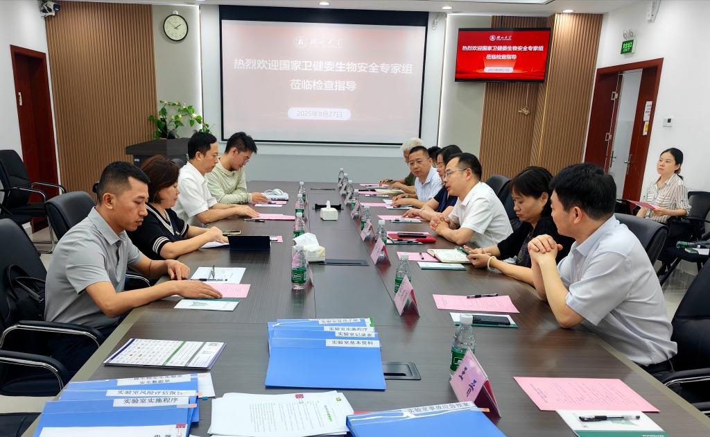 (通讯员:覃雅丽,胡柱龙)8月27日,国家卫生健康委员会生物安全专家组一行,对我校病毒学和疫苗研究中心二级生物安全实验室开展2025年度生物安全飞行检查。湖北省疾控中心、武汉市卫健委、市疾控中心、武昌区卫健局等卫健部门负责人和我校副校长、校生物安全委员会主任刘志洪陪同检查,实验室与设备管理处、科学技术发展研究院、9428cn太阳集团等相关单位负责同志及实验室人员参与迎检。副校长刘志洪对国家卫生健康委生物安全专...