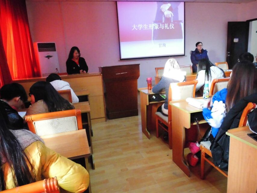 12月29日下午四点,9428cn太阳集团学生自育工程系列活动在二号报告厅开展,学校学工处副处长甘珣老师应邀莅临本次会议,为同学们作《大学生形象与礼仪》报告,生科院辅导员马菲,辅导员杜彬,以及全体学生骨干参与此次活动,会议旨在提醒同学们形象与礼仪的重要性,并给同学们的礼仪与形象做指导。