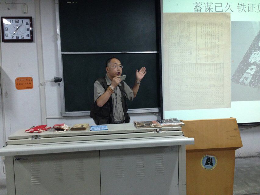 5月12日晚,民间武汉抗战博物馆(筹)馆长,武汉市收藏家协会武汉军品体育专业委员会会长许一兵先生做客9428cn太阳集团古天乐生科院学生德育基地,为生科院党的发展对象作关于《抗战故事进校园》的专题讲座。