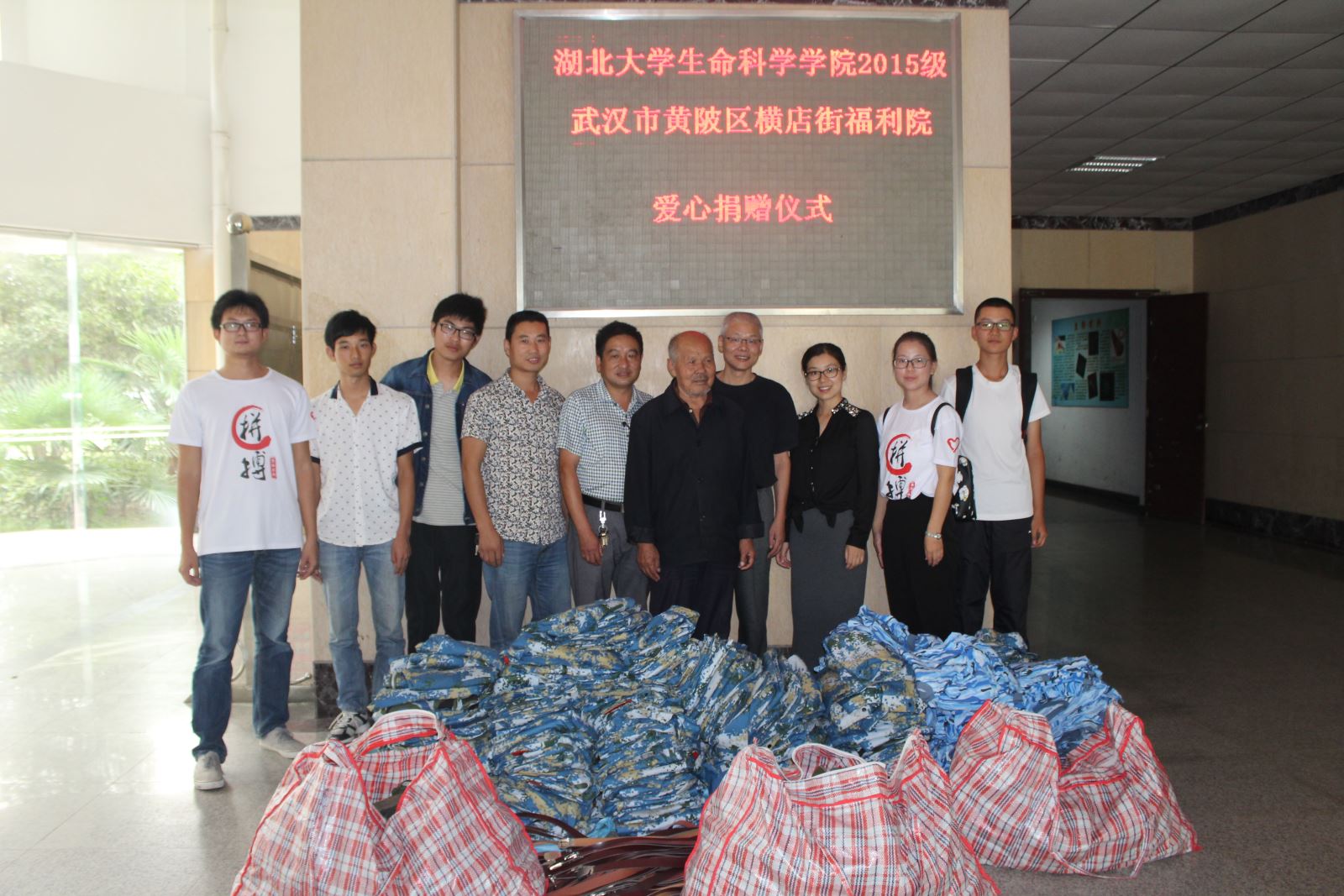 10月4日,在这国庆佳节的第四天,一项温暖的捐赠仪式在我院举行:2015级新生向武汉市黄陂区横店街福利院捐赠军训服。