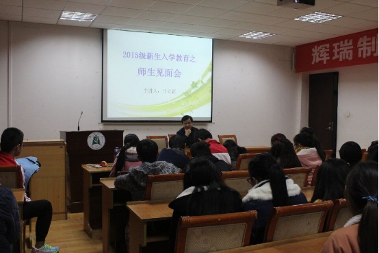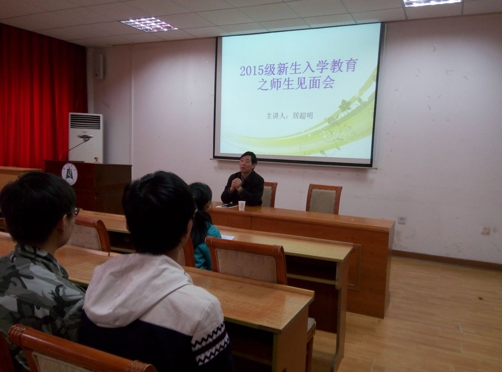 11月20号,居超明教授于生科院二号报告厅对2015级生物技术班的新生们进行了关于学术、就业和人生方面的指导和思想交流,出席本次会议的有党委副书记许良发和15级生物技术专业班主任喻雪婧。