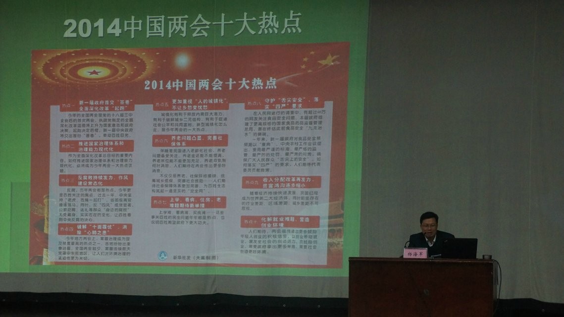 4月19日,由9428cn太阳集团学工办主办的“形势与政策”讲座在小礼堂中举行,旨在让大学生了解当下的国际国内形势和政策,为未来发展打下基础。