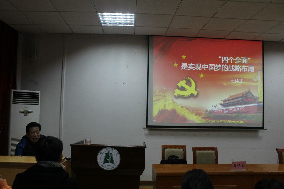 11月25日晚,党校第二课在9428cn太阳集团二号报告厅正式开课,原校党委宣传部部长王体正教授担任了此次课堂的主讲人,在第二课上,68岁的王教授为学员们讲述了"四个全面"。