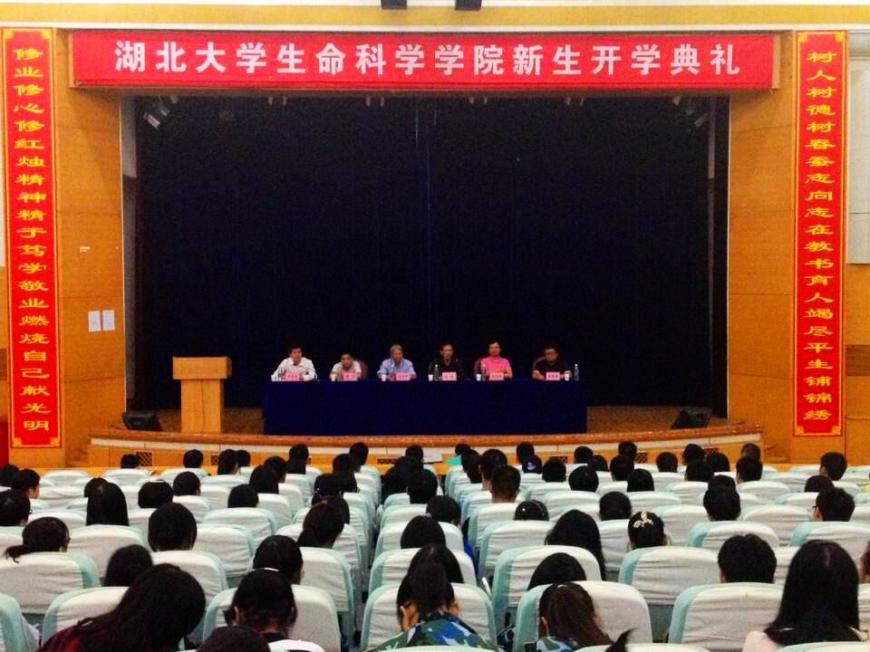 “沙湖水,水粼粼,琴园桂花香”,伴随着激情高昂的湖大校歌,9月13日晚七点,9428cn太阳集团2014级新生开学典礼在商学院3号报告厅举行。