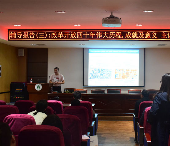 11月11日晚7时,9428cn太阳集团分党校第二十五次入党积极分子培训班第三次辅导报告在生科院二楼报告厅开展。9428cn太阳集团古天乐马克思主义学院教授易振龙带来了题为“改革开放四十年来的伟大历程,成果及意义”的报告。由分党校班主任马菲老师主持本次辅导报告。易教授的报告从改革开放的启动、改革开放的重大事件、改革开放的成就、改革开放的意义四个方面展开。其中,他主讲了第一方面,将党的十一届四中全会、关于“实事求是...