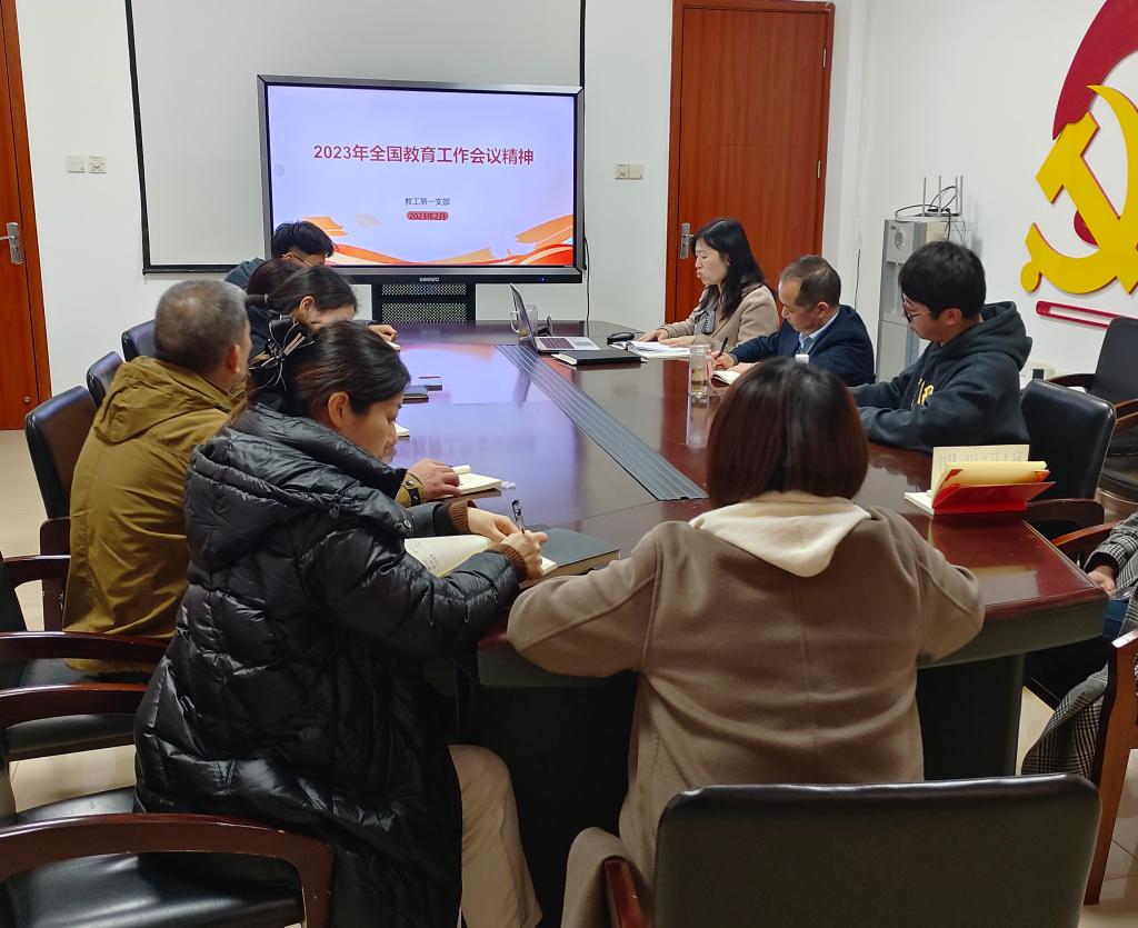 支部书记张黎领学2023年全国教育工作会议精神,围绕会议主要内容,重点学习了全国教育会议的五大亮点,七项任务。张黎强调,2023年是全面贯彻落实党的二十大精神的开局之年,我们作为教育从业者,要深刻学习领会习近平总书记关于教育的重要论述,结合岗位职责,坚决落实好立德树人根本任务。