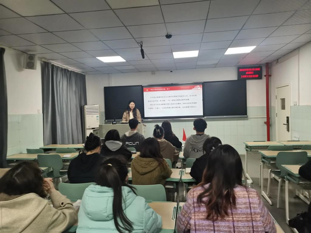 此次活动主要包含四部分内容,分别是“两会介绍”“如何践行两会精神展现青年党员的担当和使命”“党员不得有宗教信仰”和“重温党章部分内容及入党誓词”。