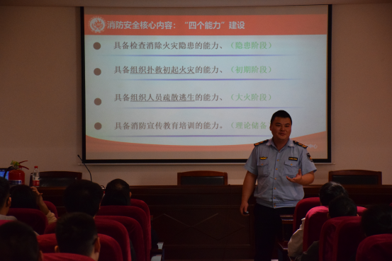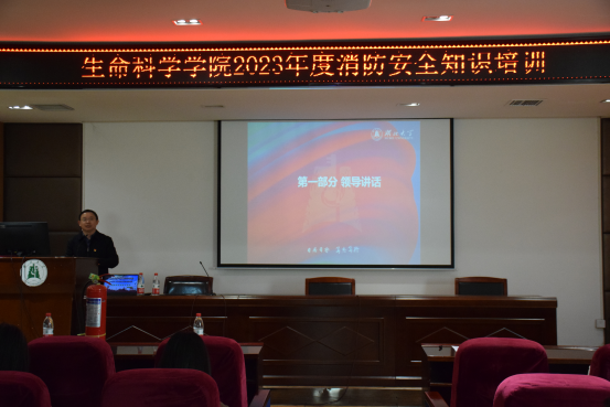 培训伊始,党委书记谢玉平书记首先向与会师生传达了学校关于做好消防安全工作的相关要求。谢玉平指出,全院师生要切实提高消防安全意识,严格做好消防安全工作,并结合近年来全国高校发生的典型火灾案例,带领全体老师开展消防安全知识培训,深刻讲解了消防安全事件发生的主要原因,提醒在场人员一定要“警钟长鸣”,消防安全工作中无小事。