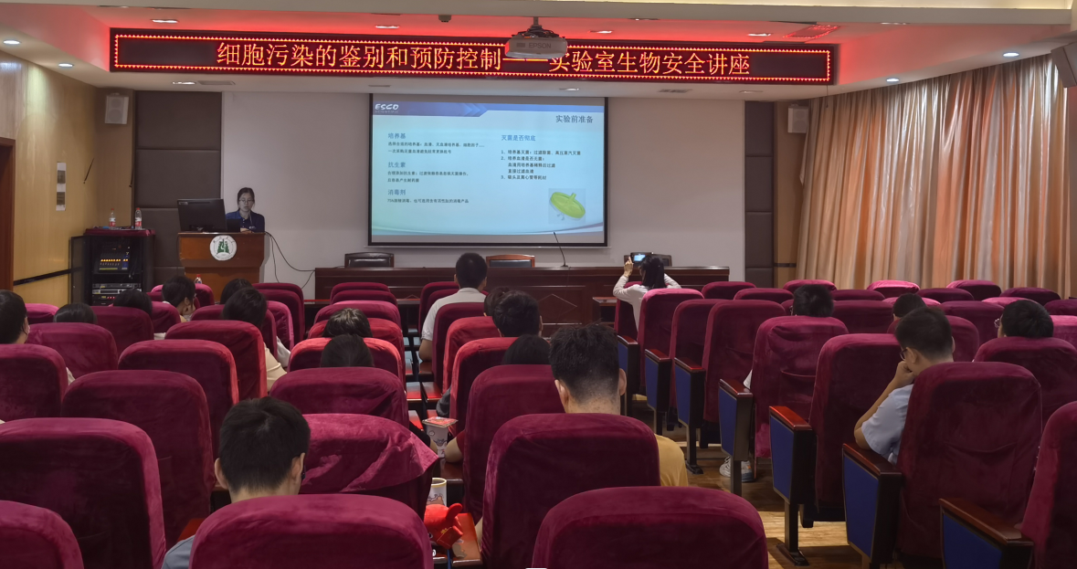周贤博士介绍了细胞污染的预防控制方法。她从细胞培养的各个环节入手,强调了规范操作的要求,并讲解了生物安全柜、二氧化碳培养箱等主要仪器的使用注意事项和日常维护方法。