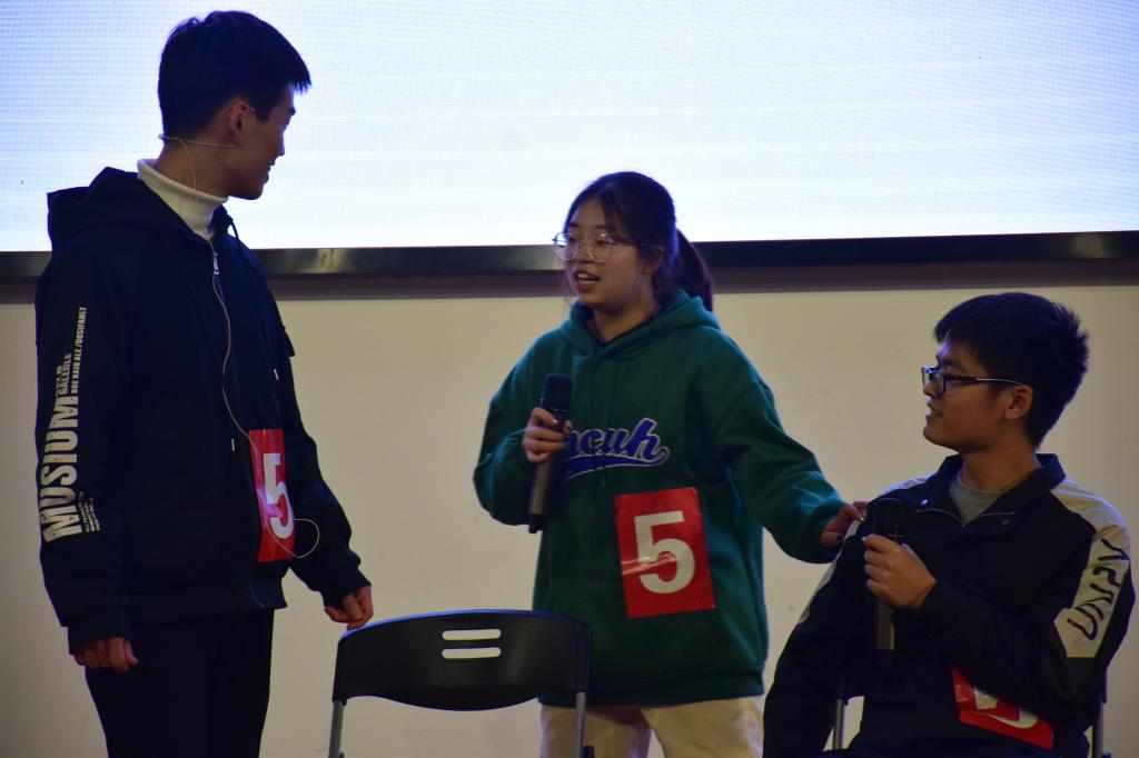 第一轮比拼旋即开始,在计时答题环节中,各组同学团结拼搏,集思广益,他们开动脑筋,沉着冷静,随机应变,用丰富的知识储备和灵活的答题策略将一道道选择、判断题斩于马下。