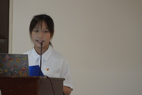 然后黄紫璐同学代表校学生会向在座青年提出了几点想法,一是坚定理想,强化信念,做担当使命的奋斗者;二是认真履职,做躬身奉献的服务者;三是勇于创新,追求进步,做锐意进取的改革者。并且希望同学牢记习近平总书记所讲的新时代好青年的重要要求,围绕政治可靠、砥砺奋进、耕植同学,朝气蓬勃的建设目标,一起努力为中华民族伟大复兴的中国梦奉献自己的青春力量。