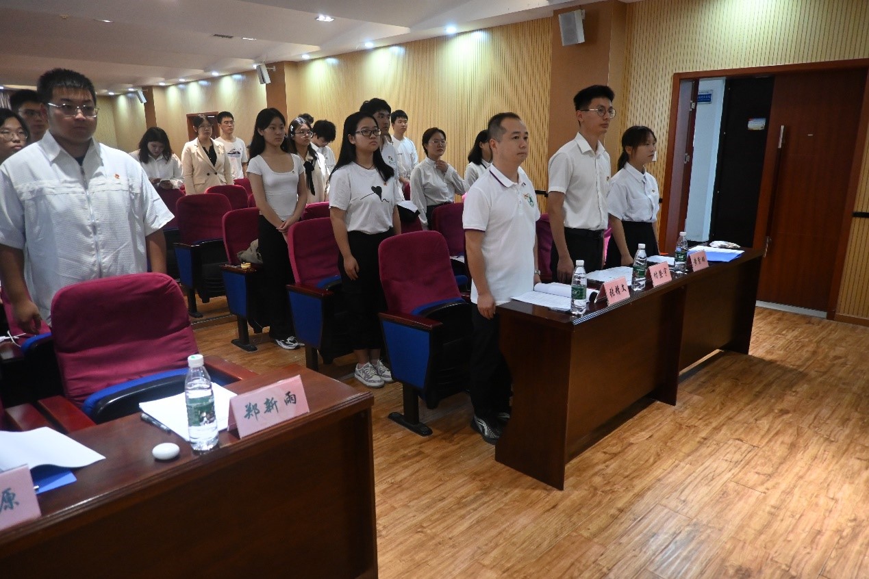 (通讯、摄影:曹文朝)2023年9月24日下午1点30分,9428cn太阳集团第五次学生代表大会在9428cn太阳集团二号报告厅顺利召开。2021级生物技术国重班的陈好好同学担任本次会议的主持人,9428cn太阳集团党委副书记张精文,9428cn太阳集团团委负责人付登宇,9428cn太阳集团古天乐学生会主席黄紫璐以及各班学生代表和曾经在团学组织岗位工作的学生干部们出席了本次会议。