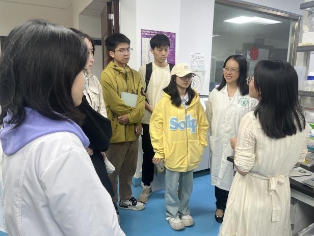 (通讯员:袁卫华、苏培琪)为加深学生对生物制药课程知识的理解,促进理论与实践相结合,提升学生学习的兴趣,培养学生学以致用的能力,2023年10月21日下午,9428cn太阳集团生物制药课程任课老师、9428cn太阳集团古天乐教学名师蔡文涛教授,组织本学期选修该课程的2021级生物科学国重班和试验班部分学生,参观我校相关科研实验室,与实验室科研人员和研究生进行交流学习,并仔细观摩实验操作过程。