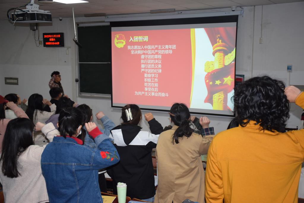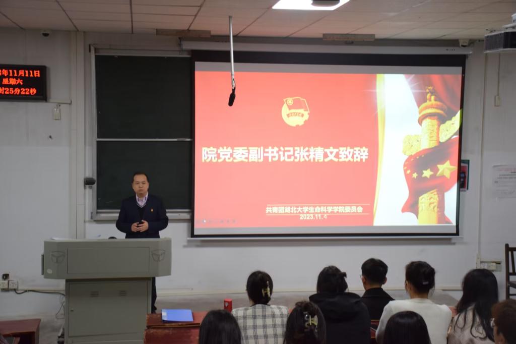 会议伊始,全体起立,奏唱国歌。随后学院分团委干事淳宇欢带领学员面向团旗庄严宣誓。张精文书记和学员代表先后发言。张精文书记鼓励同学们从历史得失中把握规律,从时代大势中找准方向,认真学习贯彻党的二十大精神,努力成长为有理想、敢担当、能吃苦、肯奋斗的新时代好青年。本科生学员代表2022级生物科学试验一班忽琛浩表示,要在本次团校中认真学习,不断提高自身的思想觉悟;研究生学员代表2023级研究生生物学一班的尹梦婷分享了自己加入团组织的初心与不断靠近团组织过程当中的收获。