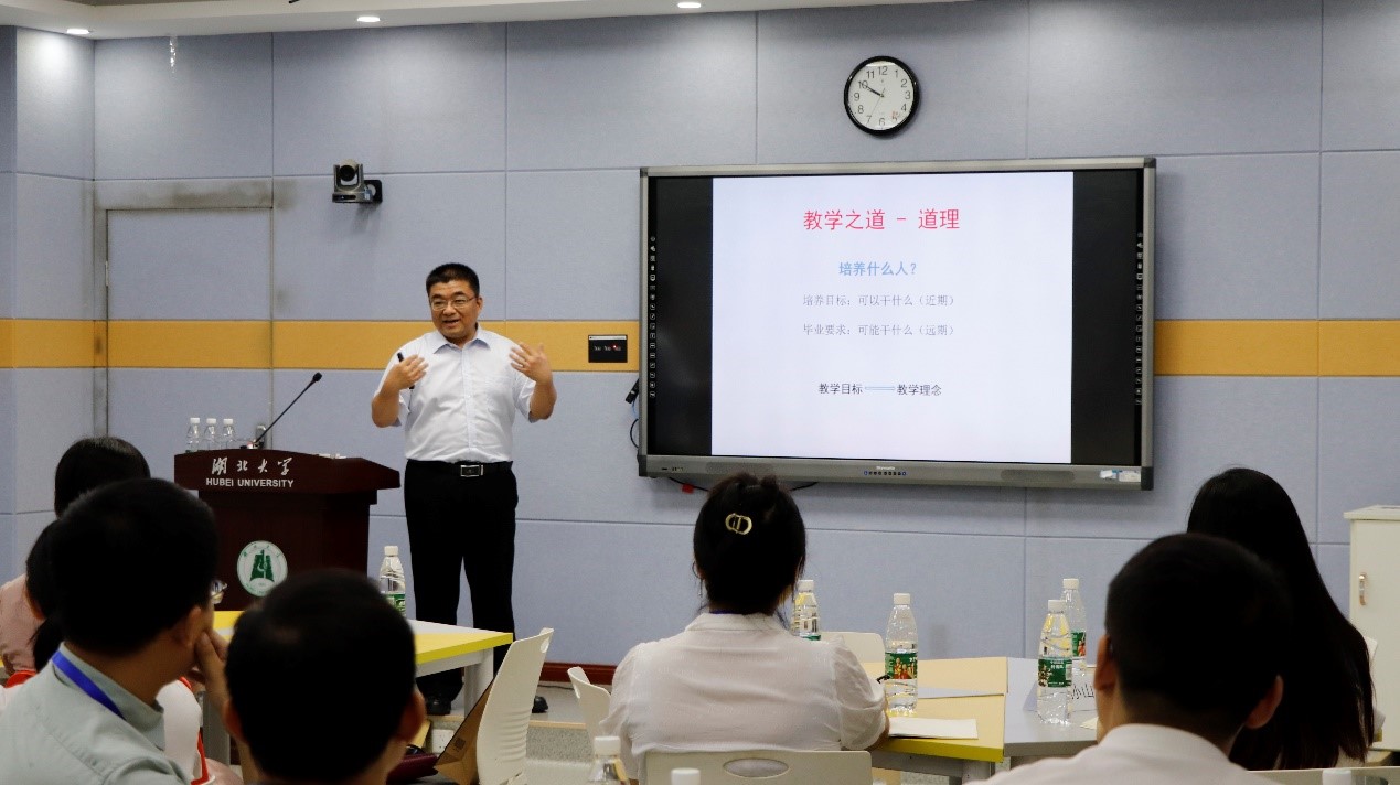 湖北省“教学名师”张海谋教授以《教学之道》为主题,分别从道义、道理、道路、道德四个方面总结自己在多年一线教学过程中的经验和方法,系统阐述“为谁培养人?培养什么人?如何培养人?谁来培养人?”的问题。张海谋教授介绍多种可以借鉴的方法,包括根据课程性质利用问题教学法、讨论式教学法等提高教学效率,激发学生学习热情;利用写教研论文和申报教学成果奖来总结教学经验,琢磨并梳理自己教学理念的逻辑。最后张海谋教授提出青年教师须起到传播正能量的作用,把立德树人当成事业而不仅仅是一份工作,这样才会有职业成就感。