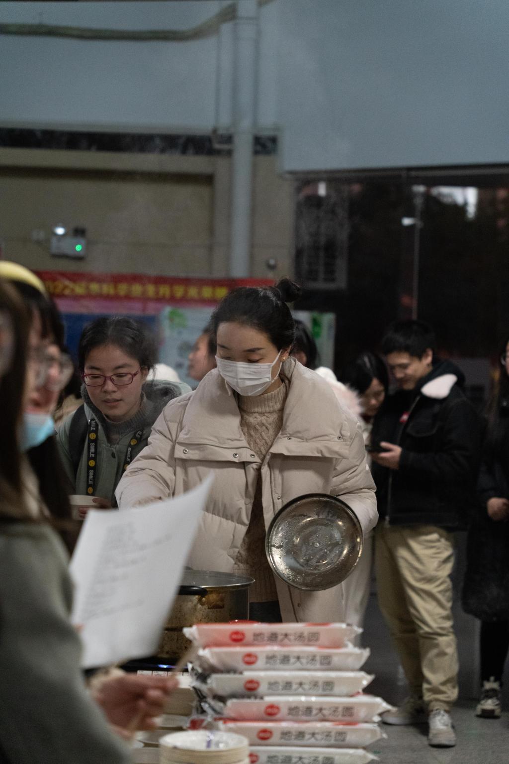 忙忙碌碌中,时钟的指针慢慢走向六点,陆陆续续有不少同学来到了生科院。灯笼旁有不少手机在忙着记录下美丽的风景,气球上一双双手攥着灯谜,彩灯旁照映出一双双努力思考、豁然开朗的眼睛。时间慢慢流走,香气慢慢飘出,煮元宵的桌前也排了一条条长龙,一批批元宵被送到生科院,一碗碗元宵被送入了同学和老师们的手中,为大家带去的不止眼前这一碗热腾腾的元宵,还有节日的氛围和温馨的时光。