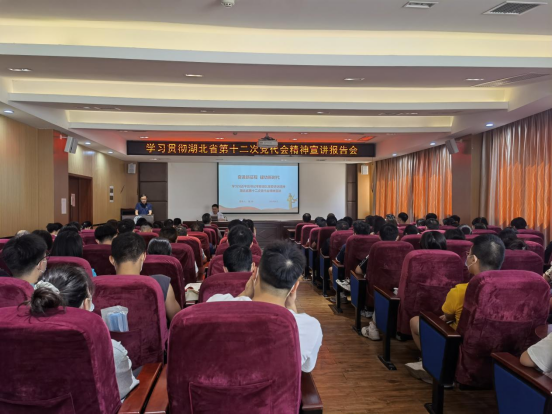 9月14日,校党委副书记祝欣来院宣讲湖北省第十二次党代会精神。院党委书记谢玉平主持报告会。学院全体领导班子、全体教工党员、党外人士代表、学生党员代表、学生班级代表参加此次报告会。