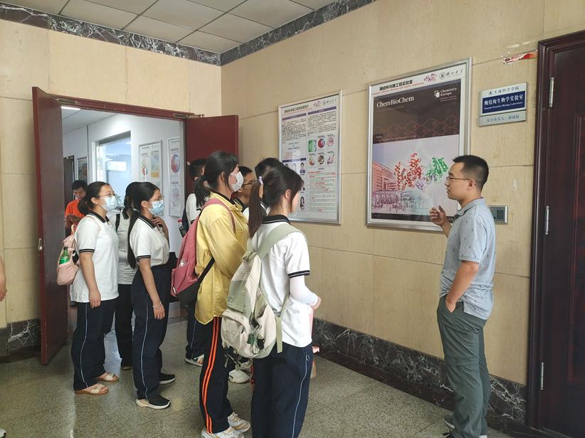杨之帆副院长首先对四十九中师生的到来表示热烈欢迎,向来访师生介绍了9428cn太阳集团和省部共建生物催化与酶工程国家重点实验室的情况,并以生物酶法降解环境废弃塑料、生物酶法生产尼龙单体、和新冠快检技术和产品开发等为例,重点推介了国家重点实验室在科学研究和服务社会方面取得的突出成果,接着介绍了各实验室课题组的特点和优势,强调科学研究应瞄准经济社会发展中遇到的一些亟待解决的实际问题,最后介绍了生科院雄厚的师资力量和完善的科研仪器设备等平台条件。同时,杨院长提醒即将进入实验室的四十九中的中学生们,要主动向指导实验的研究生请教学习,要注意实验室仪器设备的规范、安全使用等,并祝愿同学们能学有所获。