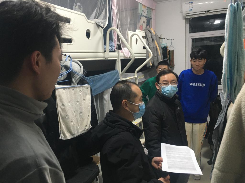同一晚,为加强学生宿舍管理,规范同学们的行为,提高同学们的自我管理与卫生意识,并保证宿舍安全。 在学校的号召下,院党委书记谢玉平、党委副书记张精文、辅导员李鑫泽开展了“除尘纳新”的宿舍安全、卫生检查活动。他们与学生亲切交流,了解了学生们的需求,并提出了相应的指导意见与建议。