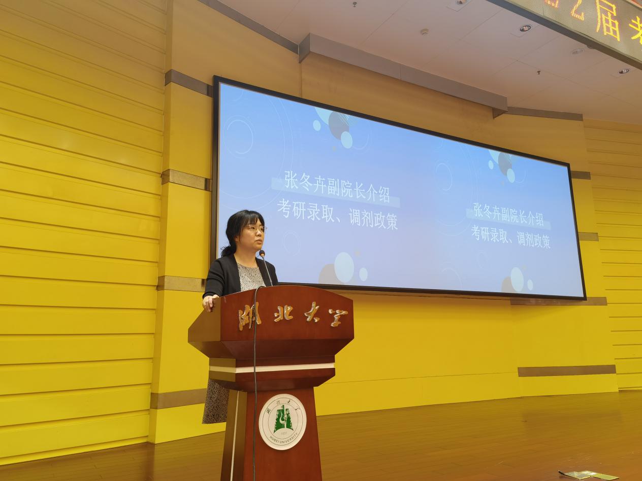 大会伊始,大家一同观看了学院国家重点实验室宣传片。接着,杨之帆副院长介绍了往年 “十年树人”选拔程序并进行动员。随后,张冬卉副院长介绍了研究生录取和调剂最新政策,她强调在竞争愈加激烈的环境下,同学们应认真思索、不要随波逐流,实现自己的价值。