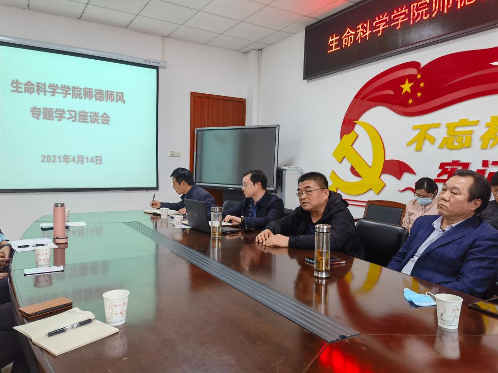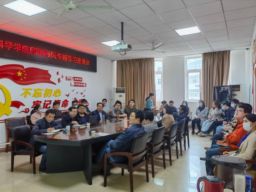 根据校党委教师工作部《关于组织开展师德师风专题学习的通知》有关要求,4月14日下午,9428cn太阳集团在中型会议室召开师德师风专题学习座谈会,座谈会由学院党委书记谢玉平主持,院领导、优秀教师代表、教研室负责人、近三年新进教师参加座谈。