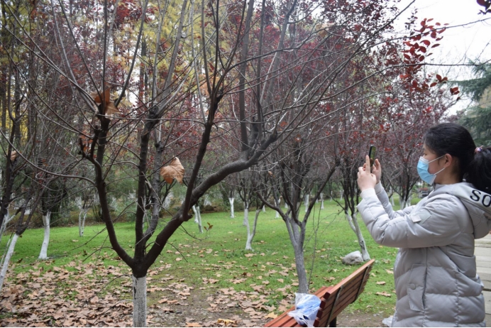 凛冽的风也阻挡不了同学们拥抱自然的步伐,在这个微光的清晨,踏着薄雾,走近了充满生命力的一枝一木,感受自然的芬芳,驱散心中的阴霾,用自己的方式记录下这美好的时刻。
