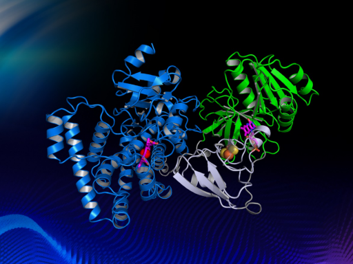 针对上述问题,为了研究自给自足P450酶电子传递的机理,陈纯琪教授研究团队解析了来源于Tepidiphilus thermophilus的CYP116B46的晶体结构,建立了清晰的蛋白质模型(图2),并阐明其电子传递途径从FMN通过[2Fe-2S]到heme。该工作首次报道了第一个自给自足P450酶的全长三维结构,对了解自给自足P450酶催化机理是一个非常重要的里程碑,并对P450酶的改造和应用具有重要的指导意义。