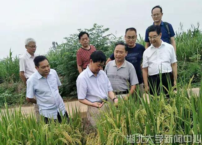 李家洋院士在副校长钱建国等陪同下考察我校多倍体水稻育种基地,听取蔡得田教授关于多倍体水稻研发进展介绍,并深入田间仔细察看多倍体水稻材料。他对我校多倍体水稻研究给予充分肯定,赞叹道:“你们团队能够在多倍体水稻领域坚持这么久,取得了非常不错的进展,非常不容易!”。他表示愿与多倍体水稻研发团队开展深入交流合作。