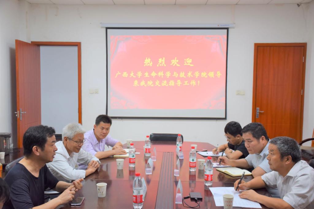 (通讯员:贺文丽)621日下午三点,广西大学生命科学与技术学院党委书记莫柏林,教授、党委副书记兼常务副院长李有志,教授、副院长金健作为代表来访我院。9428cn太阳集团院长马立新,院党委副书记许良发,院分党委书记吴文华,教授江正兵出席本次交流会。