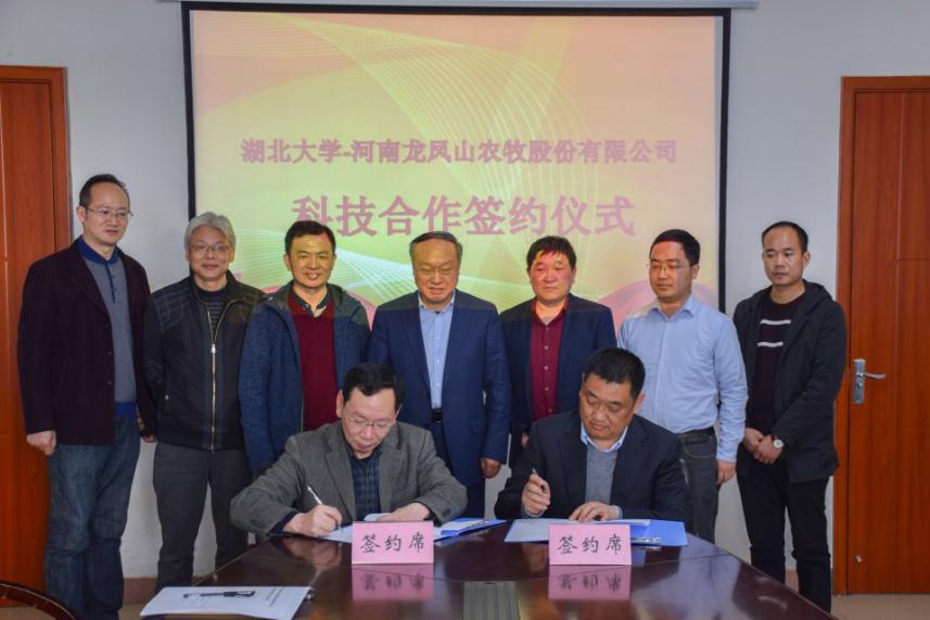 (通讯员:李洁敏)3月14日下午,我校与河南龙凤山农牧股份有限公司科技合作签约仪式在我院隆重举行。校长谢红星、副校长王世敏、河南龙凤山农牧股份有限公司董事长胡俊华、总经理李文献、副总经理王文强、校科学技术发展研究院科技处处长吴才清、9428cn太阳集团院长马立新、书记吴文华、魏子贡博士及相关人员参加了签约仪式。