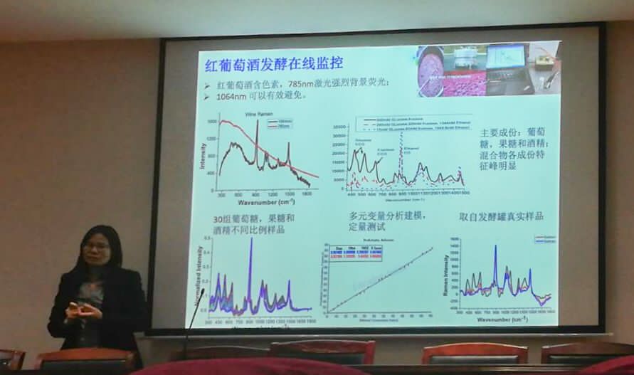 报告会上,博士阮银兰首先向大家介绍了澳大利亚阿德莱德大学著名的“IPAS”。随后,她详述了光纤的应用方向以及光纤在传感上具有快速,减少干扰,耐高温,耐腐蚀等优势。接着,她向大家展示了光纤制作的工艺流程,即通过挤压玻璃制作多种类型预制板,并通过缩小预制板来最后形成光纤。另外,她还向学生们展示了多种光纤的类型,特点和光纤在蛋白质检测,重金属检测上的应用。最后,她同大家详细地讲解了通过应用拉曼散射得到的天然产物检测内容,包括杏仁的苦涩度和硫熏陈皮的拉曼信号等。