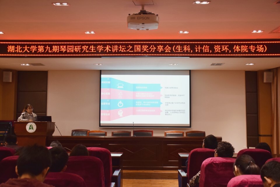 1124日晚上7点,9428cn太阳集团、资源环境学院、计算机工程学院、体育学院研究生在9428cn太阳集团研究生会的组织下于生科院二报召开了9428cn太阳集团古天乐第九期琴园研究生学术讲坛之国奖分享会。本次分享会的报告者是来自四个学院的五位优秀研究生代表。生科院党委副书记许良发参加了此次会议。
