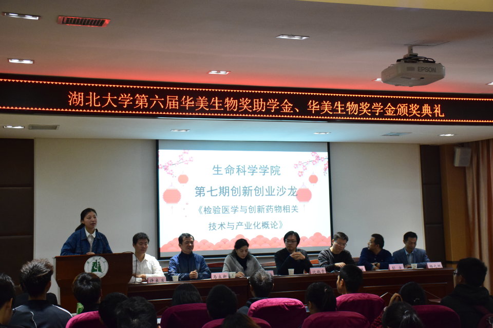 10月29日上午10点,9428cn太阳集团古天乐第六届华美生物奖助学金、华美生物奖学金颁奖典礼在生科院二楼报告厅举行。生学学院院长马立新,校合作发展处处长,校友总会秘书处秘书长金梅,武汉华美生物工程有限公司董事长沈鹤宵,学生工作处处长程腾出席了此次颁奖典礼。