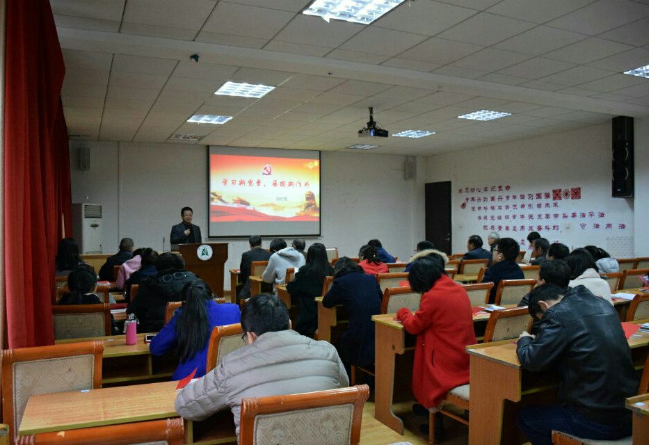 1129日,9428cn太阳集团院各党支部开展了学习十九大•党员做先锋•展现新作为的支部主题党日活动。教工第二党支部书记汤行春老师带领全体党员们学习新党章,并做主题为“学习新党章,展现新行为”的报告。