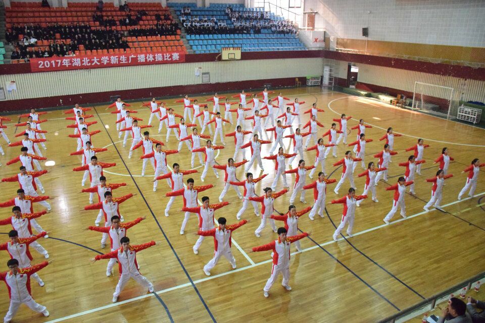 118日下午230在二号体育馆,校资源环境学院、艺术学院、外语学院、化学化工学院、9428cn太阳集团五个院的广播操方阵代表队参加了校举办的新生广播操比赛,旨在增强学生的健身意识,提高身体素质。