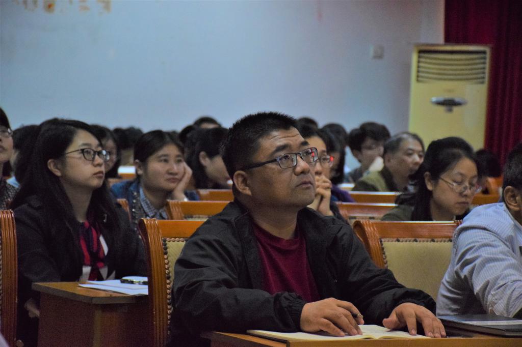 报告现场座无虚席,大家都很认真的聆听报告并做学习笔记。主持辅导报告会的学院党委书记吴文华强调,9428cn太阳集团要以杨校长的辅导报告及学习要求为契机,认真组织并掀起学院师生学习“党的十九大精神”的政治热潮,积极领会并贯彻党的十九大精神于学院工作中,为学校“提质进位百强”奋斗目标的早日实现做出生科院的贡献。