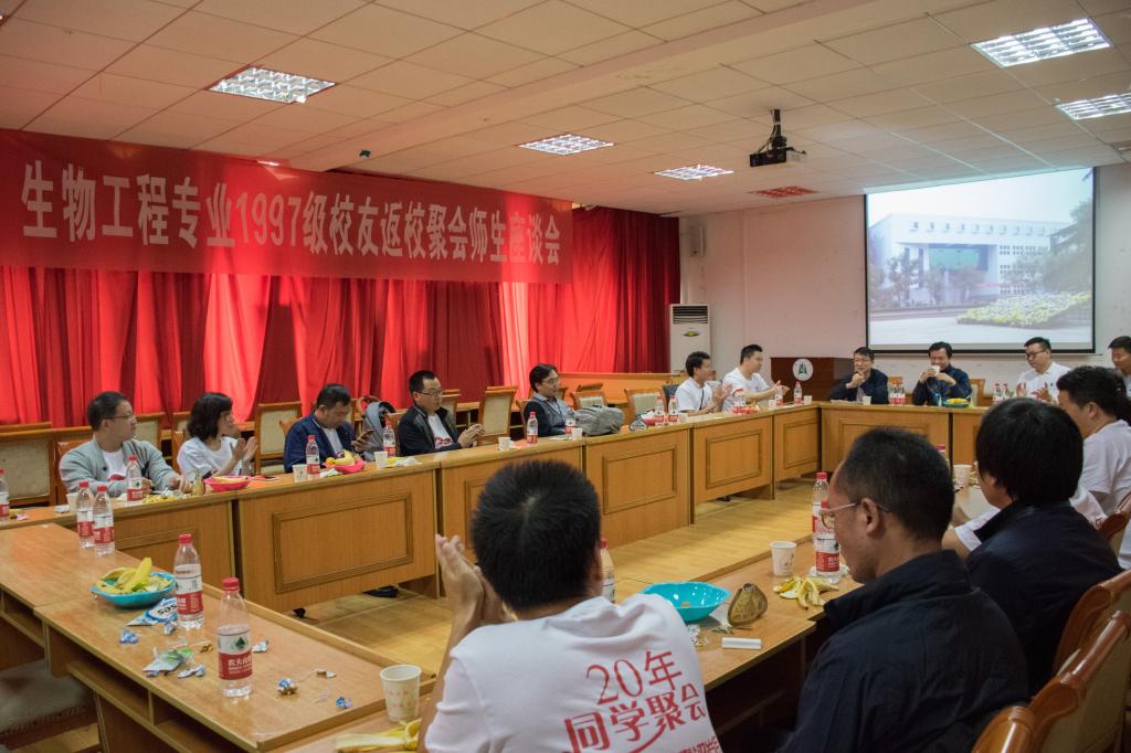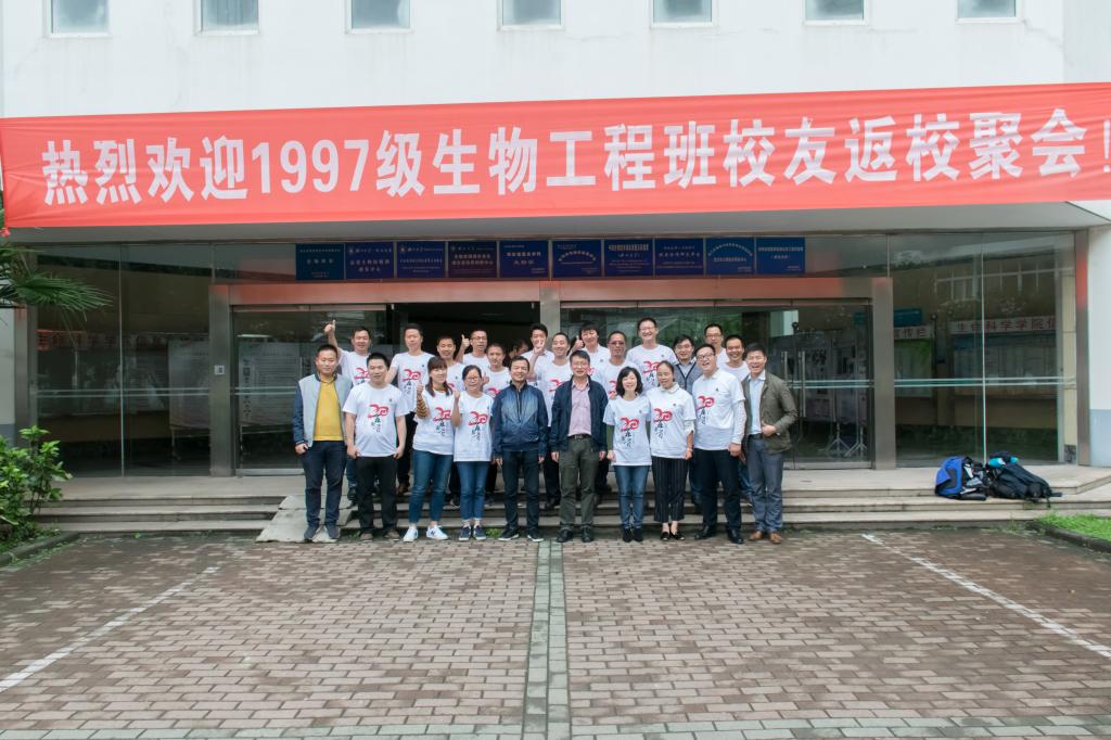 106日,秋高气爽。1997级生物工程班二十余位校友从全国各地齐聚9428cn太阳集团古天乐,庆祝入学20周年。