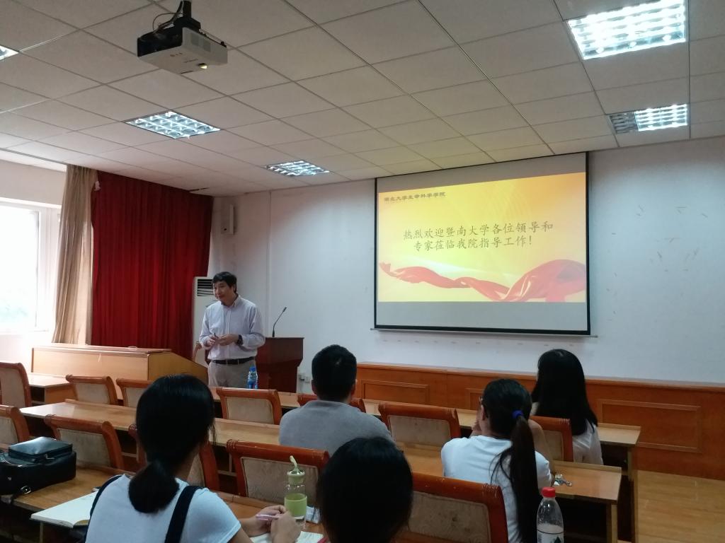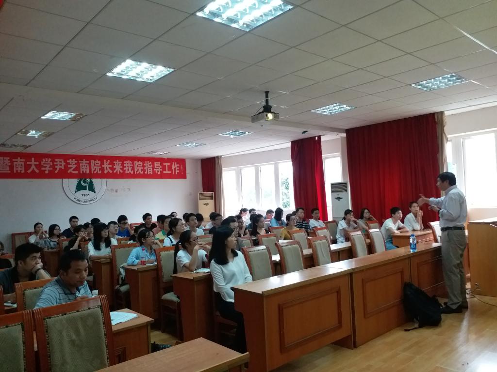 2017年9月5日,9428cn太阳集团在生科院二楼报告厅顺利举行暨南大学研究生、直博推免生招生咨询对接会议。暨南大学生物医学转化研究院院长尹芝南教授亲临会场讲解,为保证此次暨南大学招生咨询会议的质量打下基础。生科院副院长彭宇教授主持会议,参加会议的有分党委副书记许良发、研究生教学秘书张黎老师,同时生科院部分本科生、研究生也闻讯赶来咨询现场。