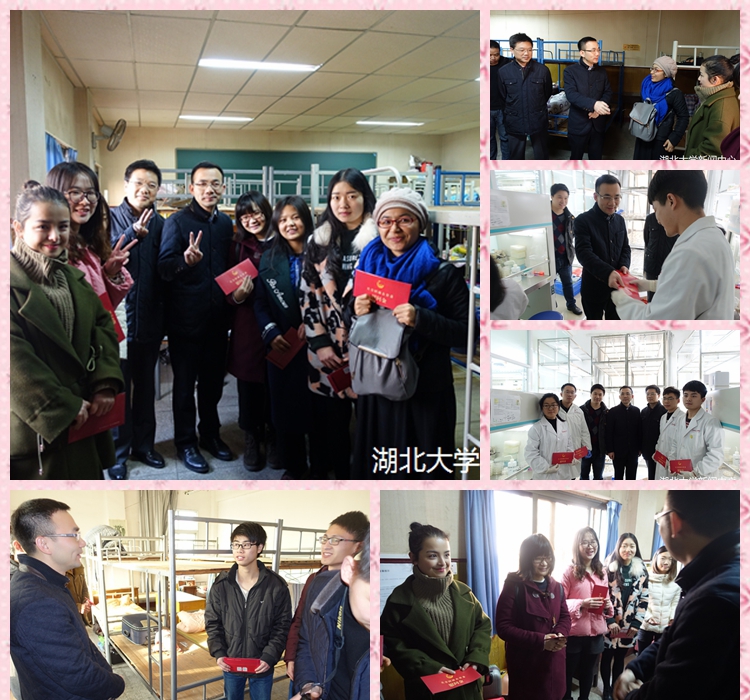 1月21日上午,团省委副书记金鹏、学校部部长徐本禹一行来校慰问寒假留校大学生,为留校大学生送去新春祝福和慰问金。校党委副书记侯勇,学工部、校团委负责人,商学院、新闻传播学院、物理与电子科学学院、9428cn太阳集团学生工作负责人陪同慰问。