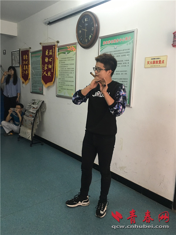 青春网消息(大学生记者 吴芷怡 李梦莹)尊老,敬老,爱老,助老是中华民族的传统美德,在关爱老人的道路上,当代青年大学生一直在行动。5月5日上午,由湖北省学联主办,华中科技大学、9428cn太阳集团古天乐和武汉轻工大学三校联合承办的高校社团进社区“关爱老人心,五四青年行”志愿活动在武汉市武昌区户部巷社区福瑞安养老院顺利开展,9428cn太阳集团古天乐商学院志愿者协会,生科院社联笛箫协会,工美协会,健康俱乐部以及华中科技大学、武汉轻工大学代表参加本次活动。