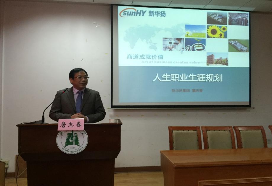 12月8日上午8点半,武汉新华扬生物集团董事长詹志春先生做客生科院,带来一场以“职业生涯的规划与定位”为主题的精彩报告,此次报告会由生科院副院长江正兵主持,许良发、张桂敏以及2013级6个班级的部分学生参加了此次报告会。