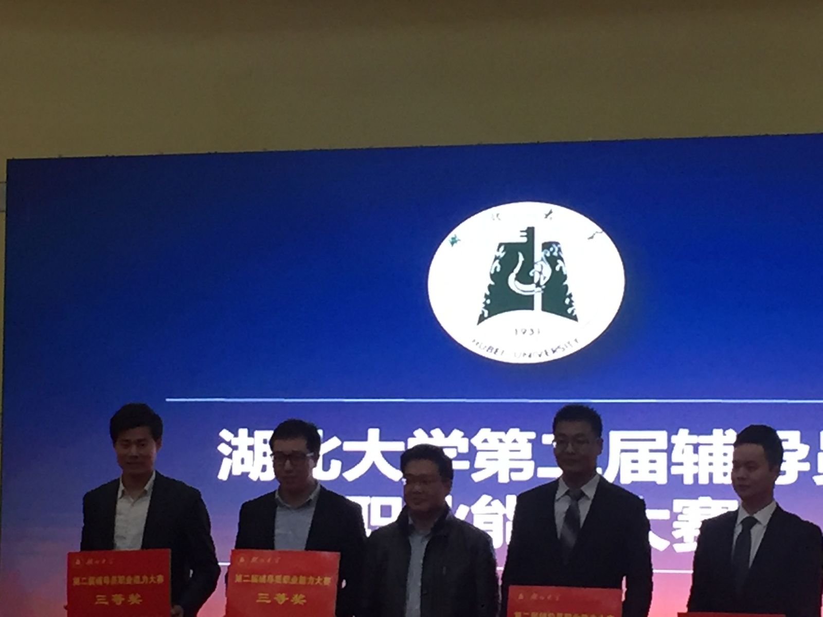 经过前期的笔试、复试等环节,此次决赛共有10名优秀选手入围,赛制分为主题演讲、案例分析、谈心谈话三个环节,以三轮总成绩为标准进行评判。在第一轮比赛中,许书记提前抽到的演讲题目是《十面霾伏》,许书记以一句“世界上最远的距离不是生与死,而是我牵着你的手,我却看不清你的脸”开始了他的演讲。在演讲中,他提及了最近几年的雾霾报道与危机状况,并对抗击雾霾提出行动倡议,其铿锵的话语,从容的姿态,赢得了在场所有人的掌声!而底下的学生观众们也大喊着“发哥,加油”的口号。到了案例分析环节,许书记知晓案例后沉着应答,答题时逻辑清晰,观点明确,详细给出了案例相关的解决方案以及采取的措施,更体现了他的睿智。比赛来到激动人心的最后一轮谈心谈话环节。学生演员上台配合老师模拟题目进行场景展示。许书记睿智而清晰的思路令人眼前一亮,妙语连珠,提出一些建议,用幽默的话语化解尴尬的同时,更用换位思考的方式启迪学生,在学生临走时还赠书来增强学生为人智慧,表现了作为一个辅导员应有的应变能力。最终许书记获得三等奖。