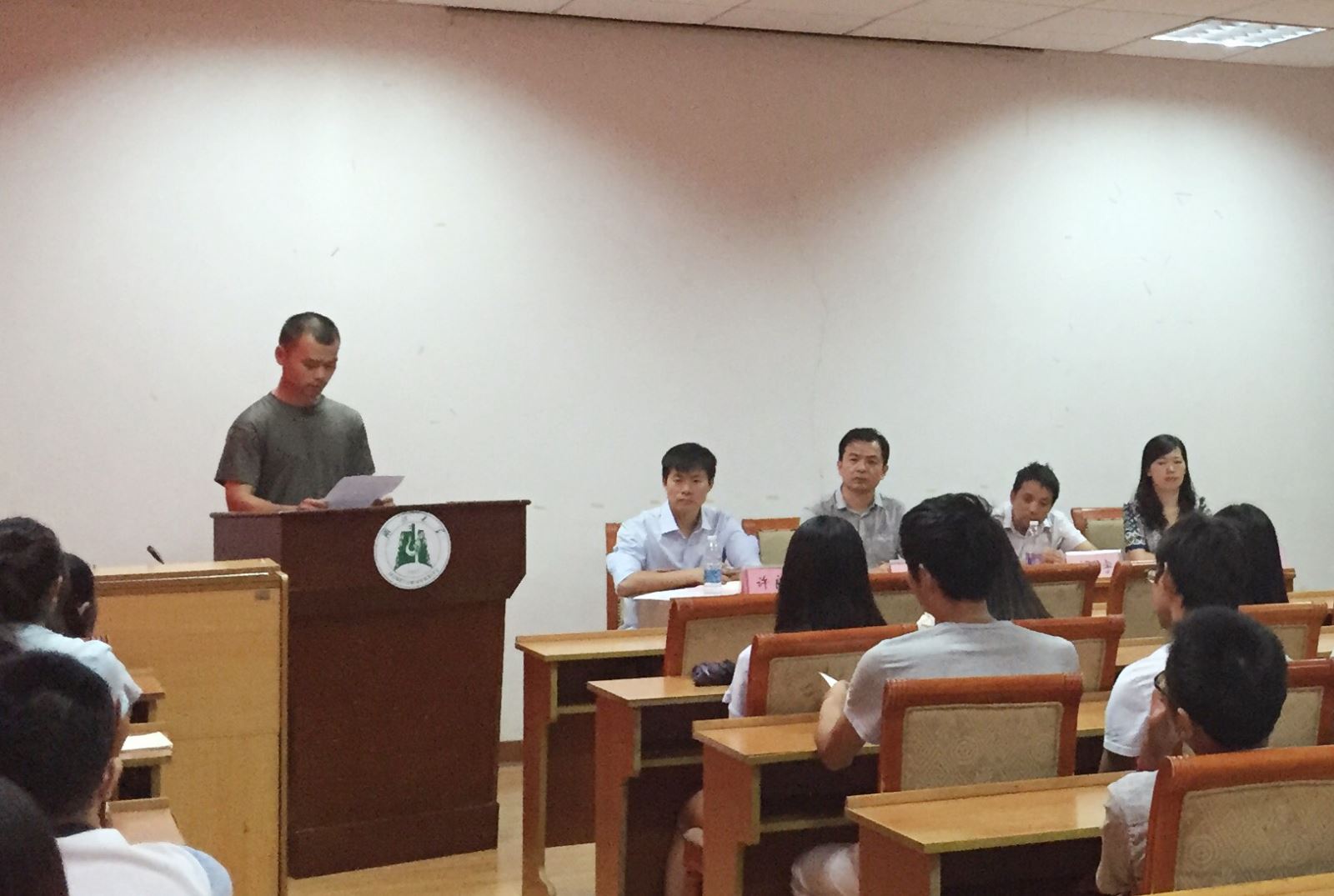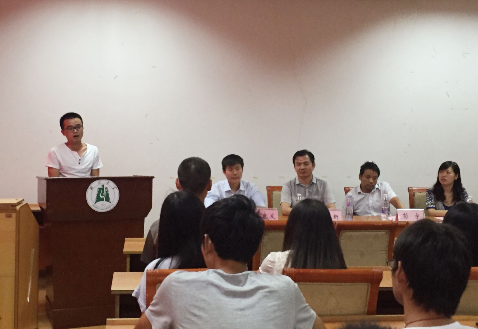 随后,彭院长向2015级新生们介绍了学校、学院关于研究生培养和学位授予的政策要求,并向大家通报了2015届研究生100%的就业率。彭院长表示,研究生阶段是一个新的成长历程,要继续树立远大理想,并为之奋斗;同时,他还希望大家多看,多做,多写,并着重强调在科研中一定要讲求学术诚信。