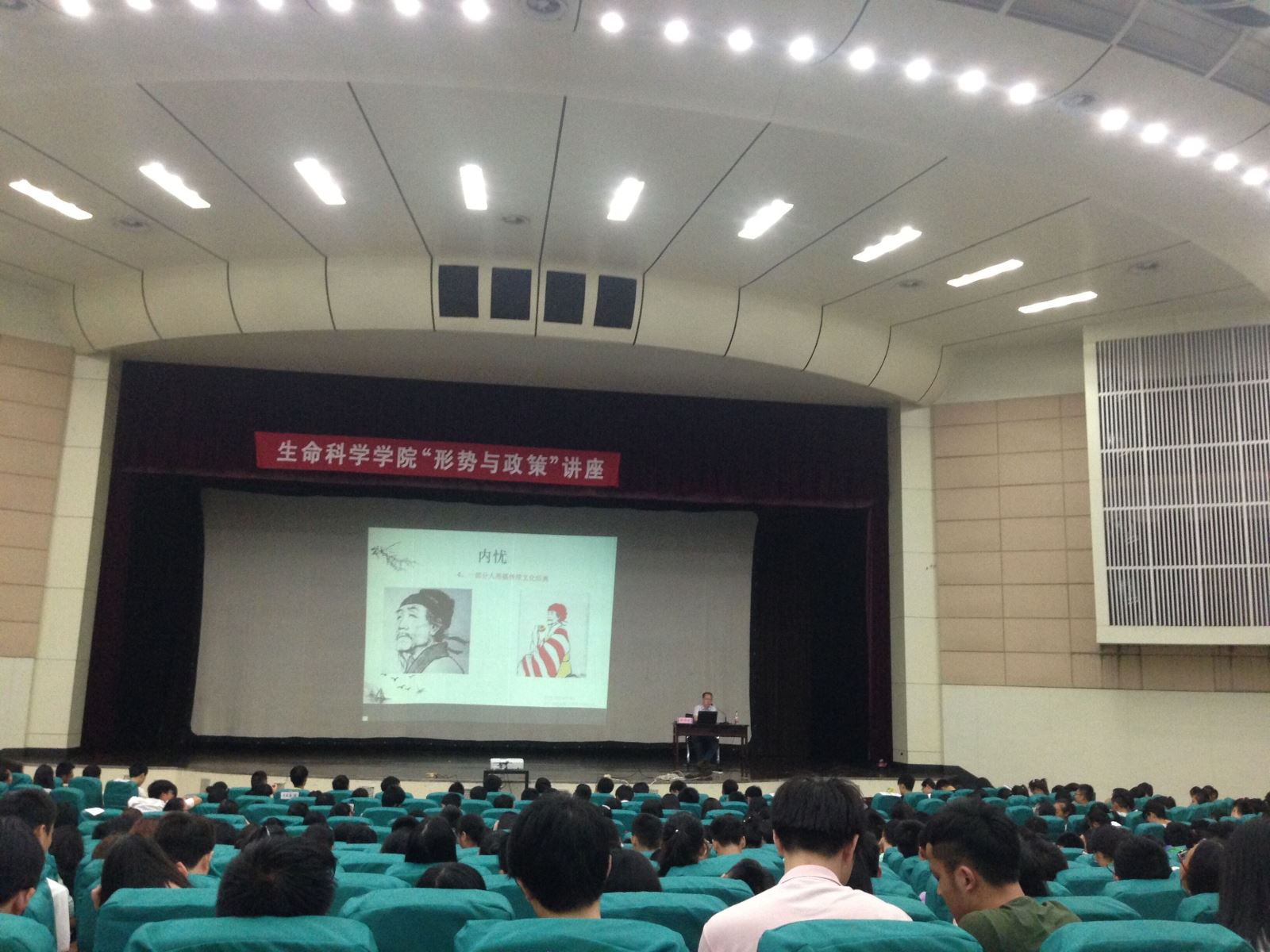 6月14日,9428cn太阳集团“形势与政策”专题讲座在小礼堂隆重举行。参加此次讲座的有9428cn太阳集团古天乐学生工作处副处长甘珣,9428cn太阳集团古天乐宣传部副部长陈红灿和2011级从部队复员的肖伟以及生科院全体同学。