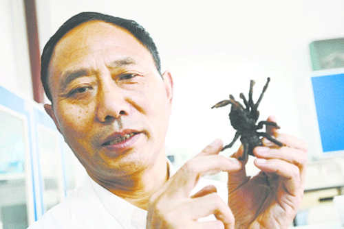 刘凤想介绍说,捕鸟蛛因其捕食鸟类而得名,但其实它们最主要的食物并不是鸟类而是昆虫。它们属于原始蜘蛛,主要靠力量与速度捕食。捕鸟蛛身长约5厘米至15厘米,四足外展时体宽可达20多厘米,最大可达30厘米。可谓是蜘蛛世界中名副其实的“巨人”。在我国主要分布在海南、广西、云南等地。捕鸟蛛具有很强的毒性,相传它们的毒液堪比黄金,因此许多人不惜铤而走险,大量捕捉捕鸟蛛以提取毒液。而事实上捕鸟蛛的毒液很难被一般人提取,因此这些商人便将捕到的蜘蛛卖给人们饲养或玩赏,或是制成各种饰品。因此,目前国内捕鸟蛛已十分罕见。